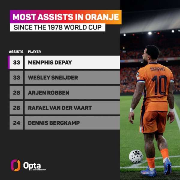 在日前结束的一场世界杯预选赛中,荷兰队坐镇主场迎战波兰,最终双方以1-1握手言和。本场比赛中,德佩展现出精准的传球视野,送出关键助攻帮助队友邓弗里斯完成破门。