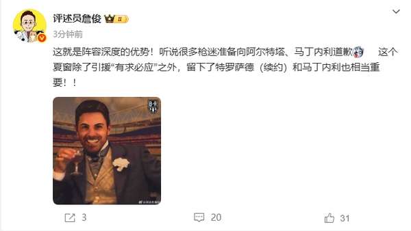 詹俊特别强调,除了夏季转会窗口的精准引援外,成功留住特罗萨德(完成续约)和马丁内利对球队同样至关重要。这一系列操作不仅增强了球队的整体实力,更为新赛季多线作战提供了坚实保障。阿森纳通过合理的阵容构建,展现出应对高强度赛事的出色适应能力。